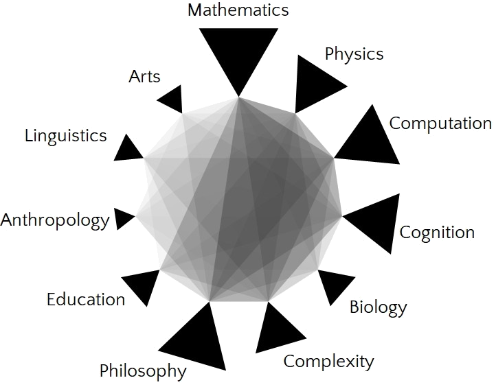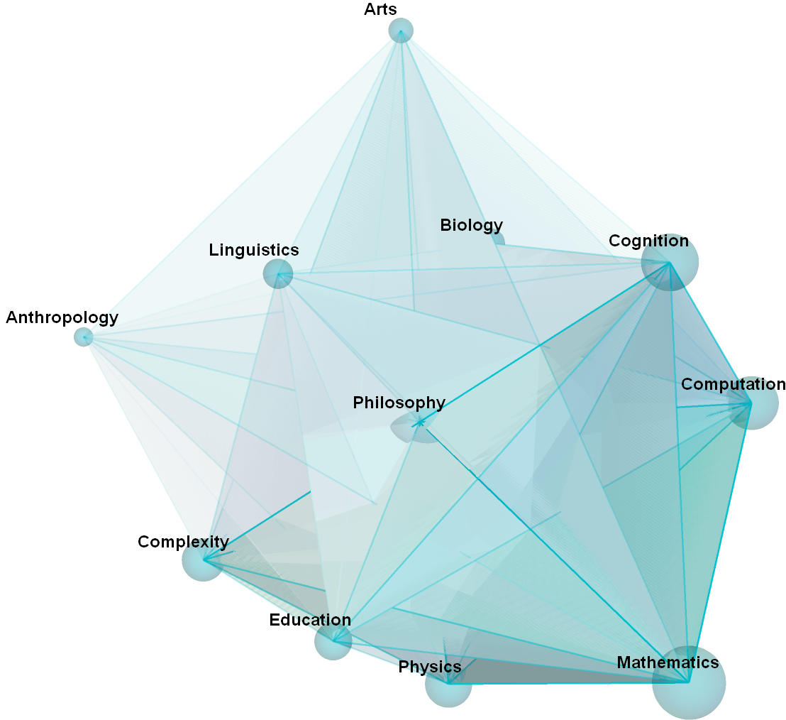 Dataset generated from participant answers to ‘What disciplines better represent your research activity or interests?’. Sphere volume is proportional to the number of instances participants selected each discipline. Each datapoint is a shape (hyperlink) connecting some collection of disciplines. Shade intensity and opacity is proportional to the number of datapoints in that region of the diagram. Instructions: Single-click on the graphic to bring up the orange frame. Click and drag on the orange edges to make it larger and clearer to read (try to fit the size of the frame for optimal viewing). Click and drag on the graphic to rotate it, holding shift to pan and holding ctrl/⌘ to zoom. The graphic may take a couple of seconds to render sometimes. If it becomes unresponsive please reload the page.