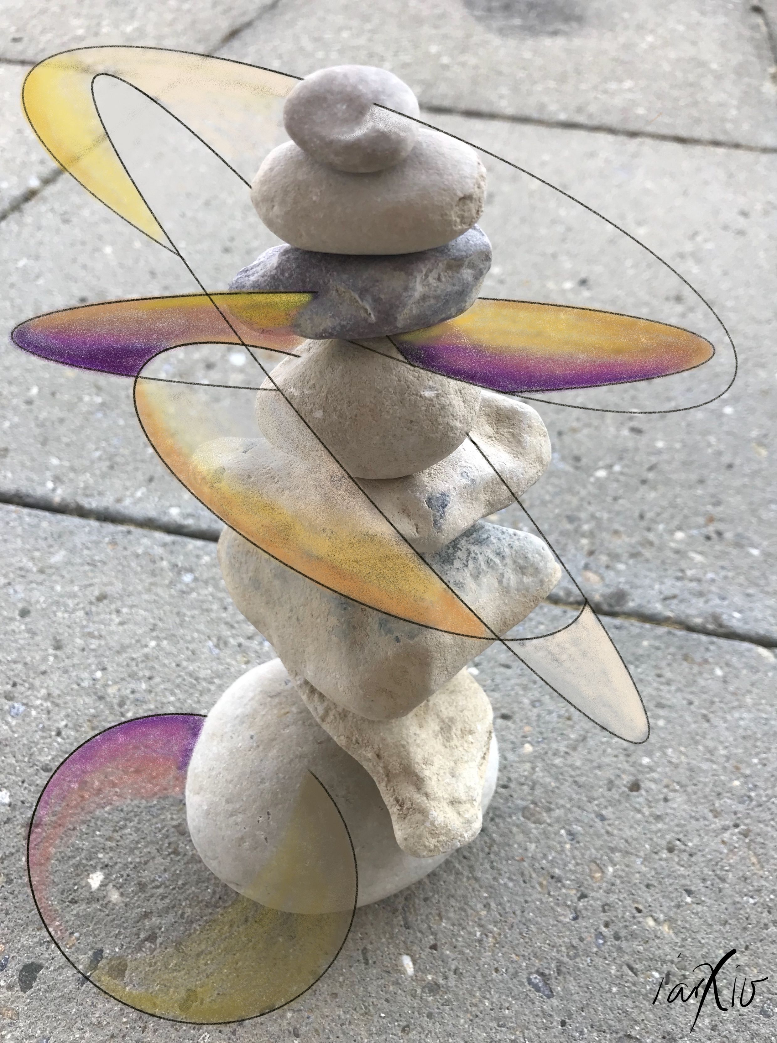 Gravity in the Balance (Mixed) Hidden geometries expressed in artistic shorthand.